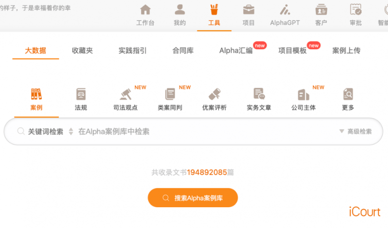 精准赋能每一次决策,鞭策法令行业从“经验驱动”向“数据驱动”转型升级,实现团队协做的全程留痕取尺度化,iCourt环绕法令工做的焦点需求。