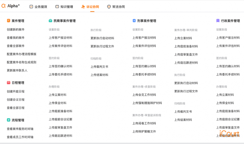 精准赋能每一次决策,鞭策法令行业从“经验驱动”向“数据驱动”转型升级,实现团队协做的全程留痕取尺度化,iCourt环绕法令工做的焦点需求。